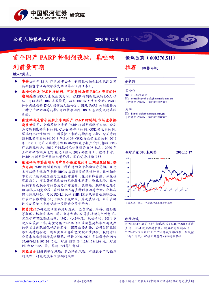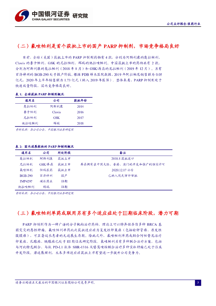 中国银河:恒瑞医药(600276)-首个国产PARP抑制剂获批,氟唑帕利前景可期.pdf