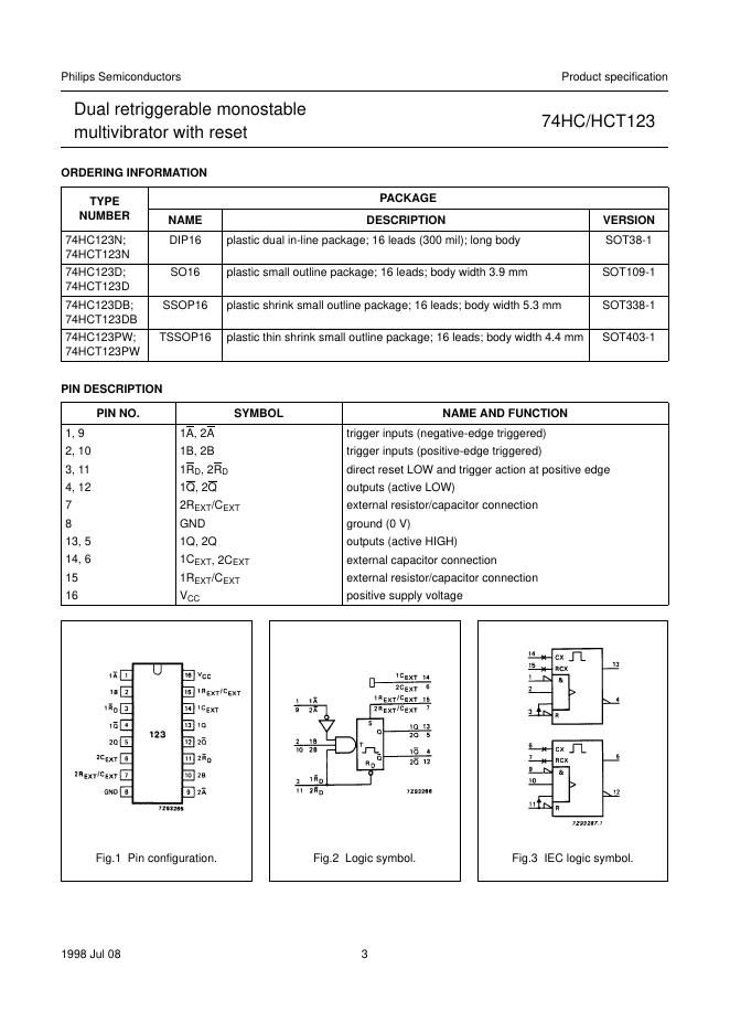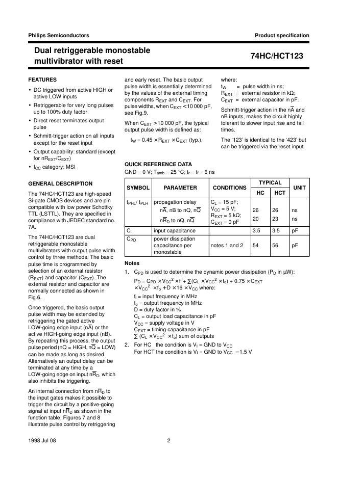 philips 74HC/HCT123 Dual retriggerable monostable multivibrator with reset 数据手册 (1).pdf