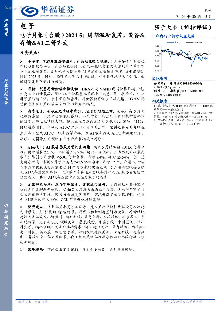 华福证券:电子月报(台股)2024-5:周期温和复苏,设备&存储&AI三箭齐发.pdf