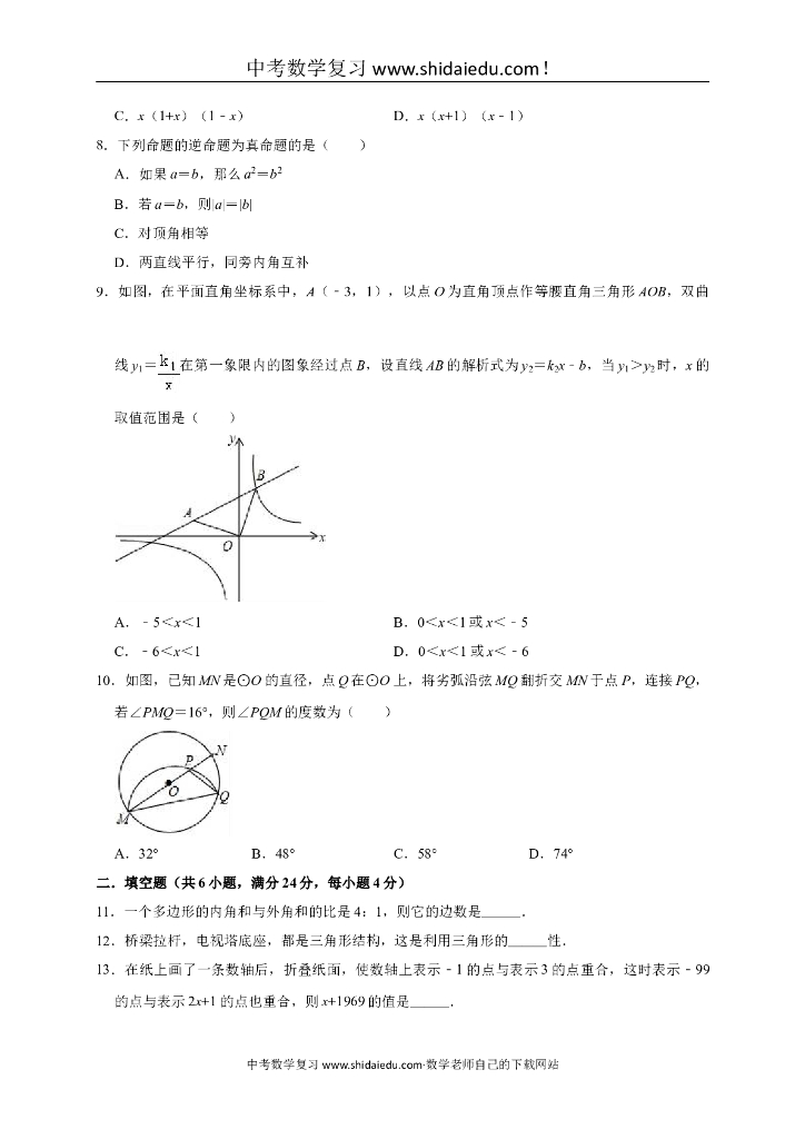 广东省佛山市禅城区澜石中学中考数学二模试卷(解析版).doc