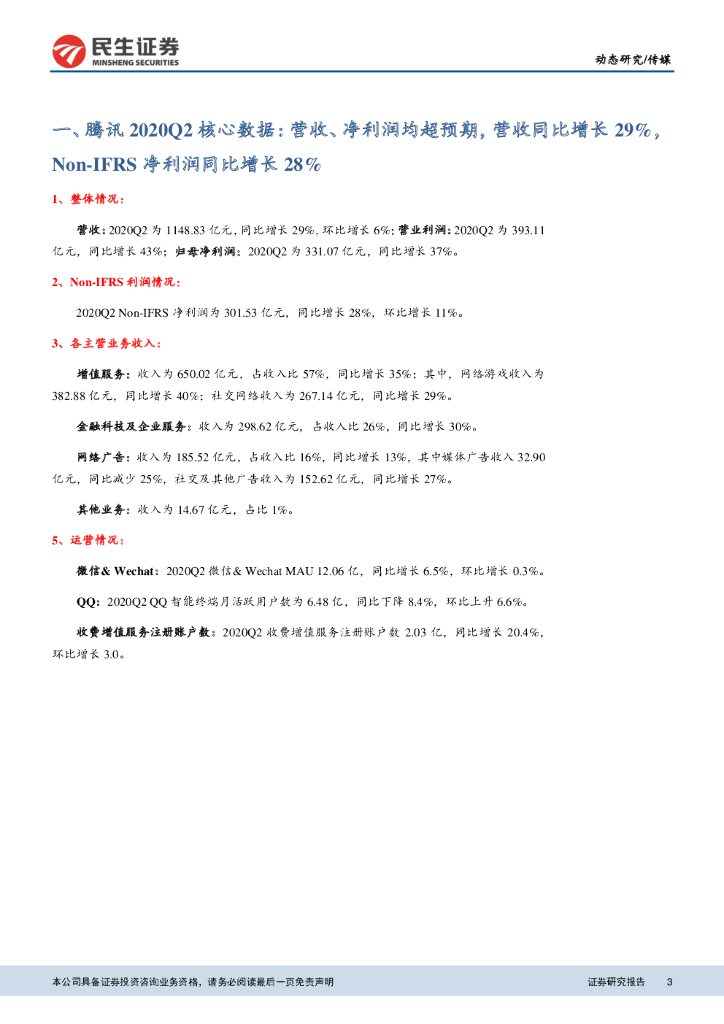 民生证券:游戏行业跟踪:腾讯控股:2020Q2财务业绩报告点评:宅经济景气度延续,腾讯20Q2业绩高增.pdf