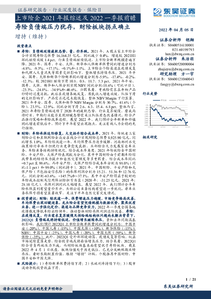 东吴证券:上市险企2021年报综述及2022一季报前瞻:寿险负债端压力犹存,财险板块拐点确立.pdf