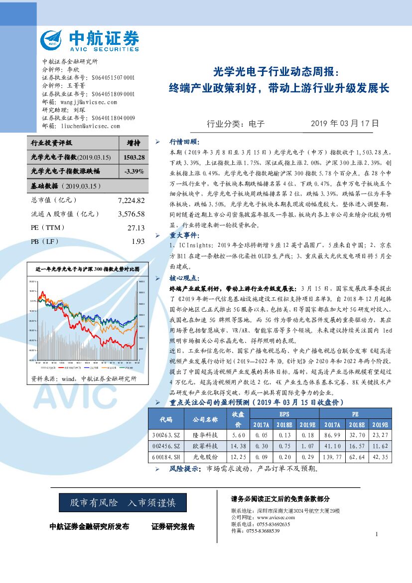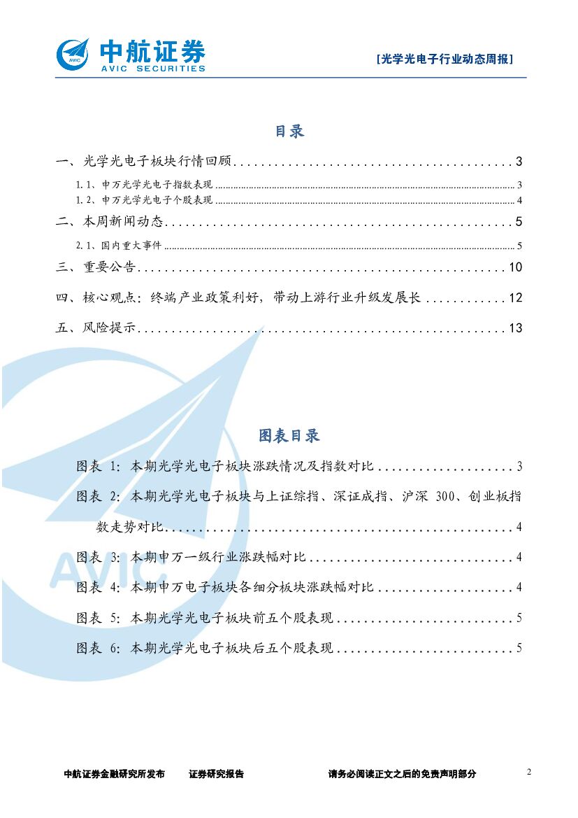 中航证券:光学光电子行业动态周报:终端产业政策利好,带动上游行业升级发展长.pdf