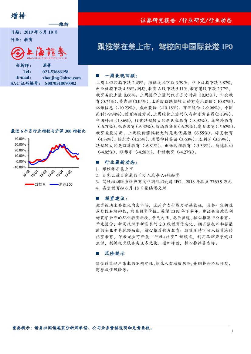 上海证券:教育行业动态:跟谁学在美上市,驾校向中国际赴港IPO.pdf