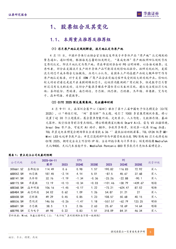 华鑫证券:电子行业周报:芯片原产地认定规则发布,CITE2025成功在深举办.pdf
