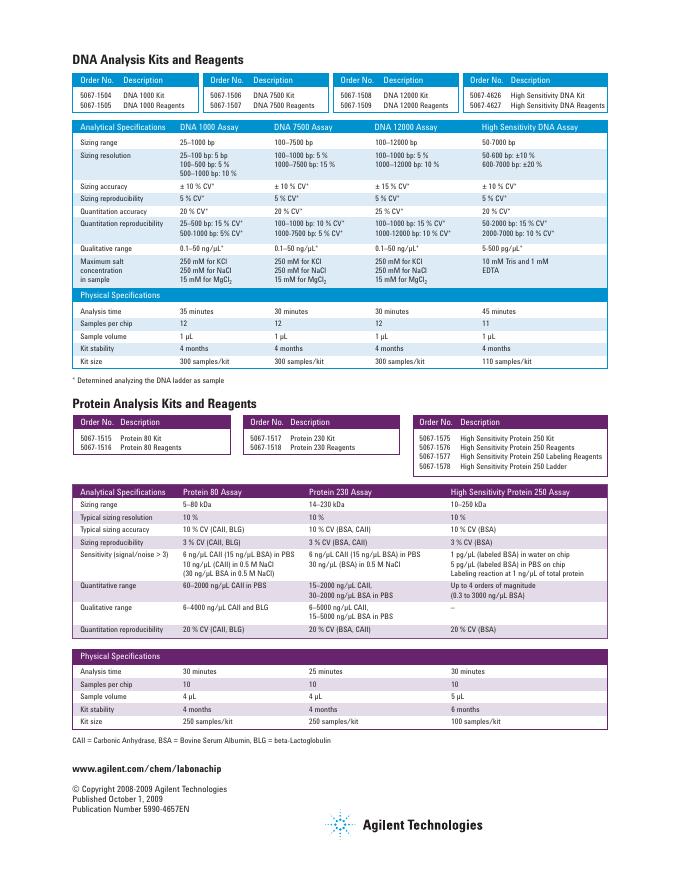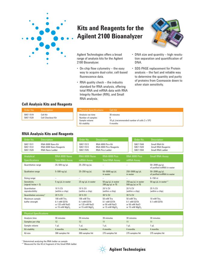 Agilent Kits and Reagents for the Agilent 2100 Bioanalyzer 数据手册.pdf