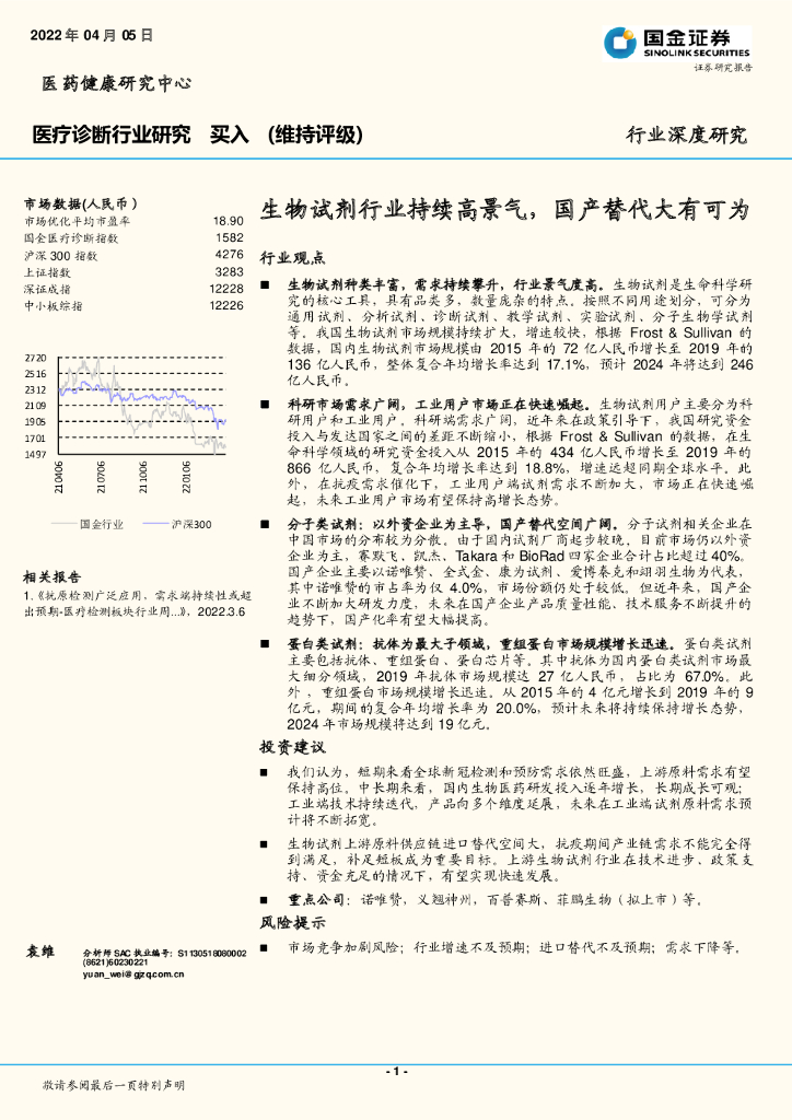 国金证券:医疗诊断行业研究:生物试剂行业持续高景气,国产替代大有可为.pdf