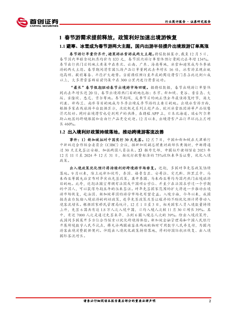 首创证券:社会服务行业简评报告:社服:春节游需求提前释放,政策加速出境游恢复.pdf