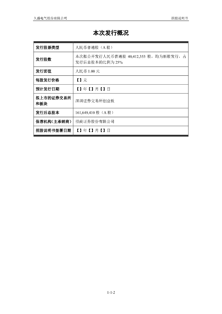 久盛电气股份有限公司深交所创业板IPO上市招股说明书.pdf