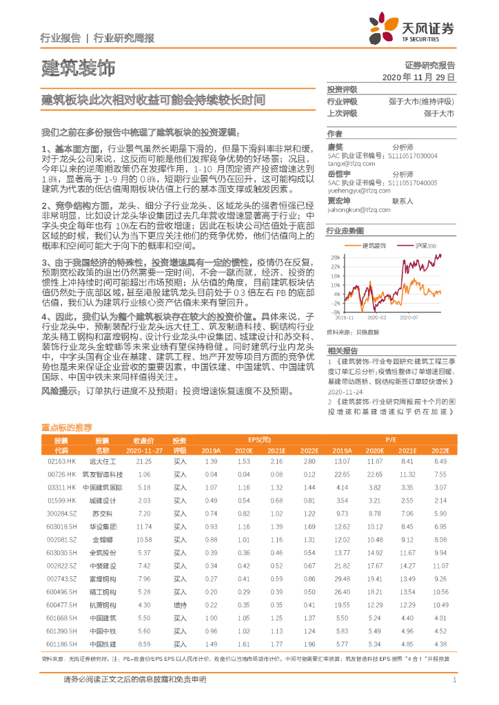 天风证券:建筑装饰行业研究周报:建筑板块此次相对收益可能会持续较长时间.pdf