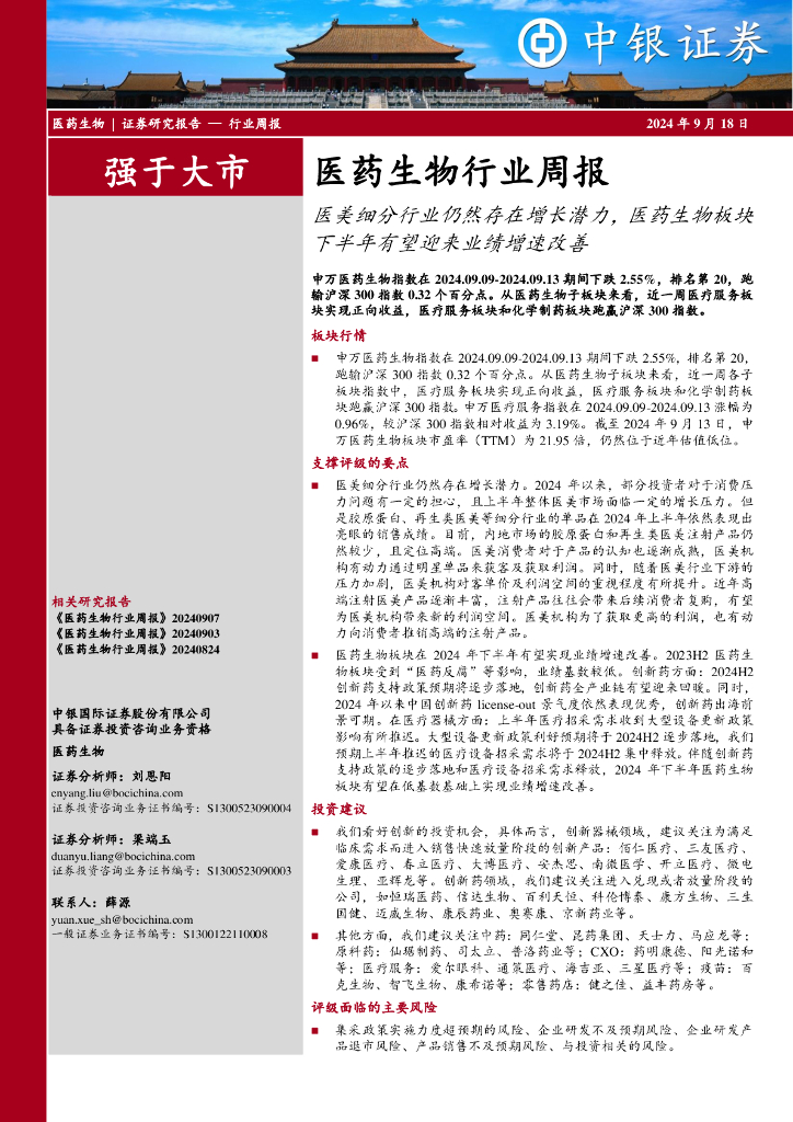中银证券:医药生物行业周报:医美细分行业仍然存在增长潜力,医药生物板块下半年有望迎来业绩增速改善.pdf