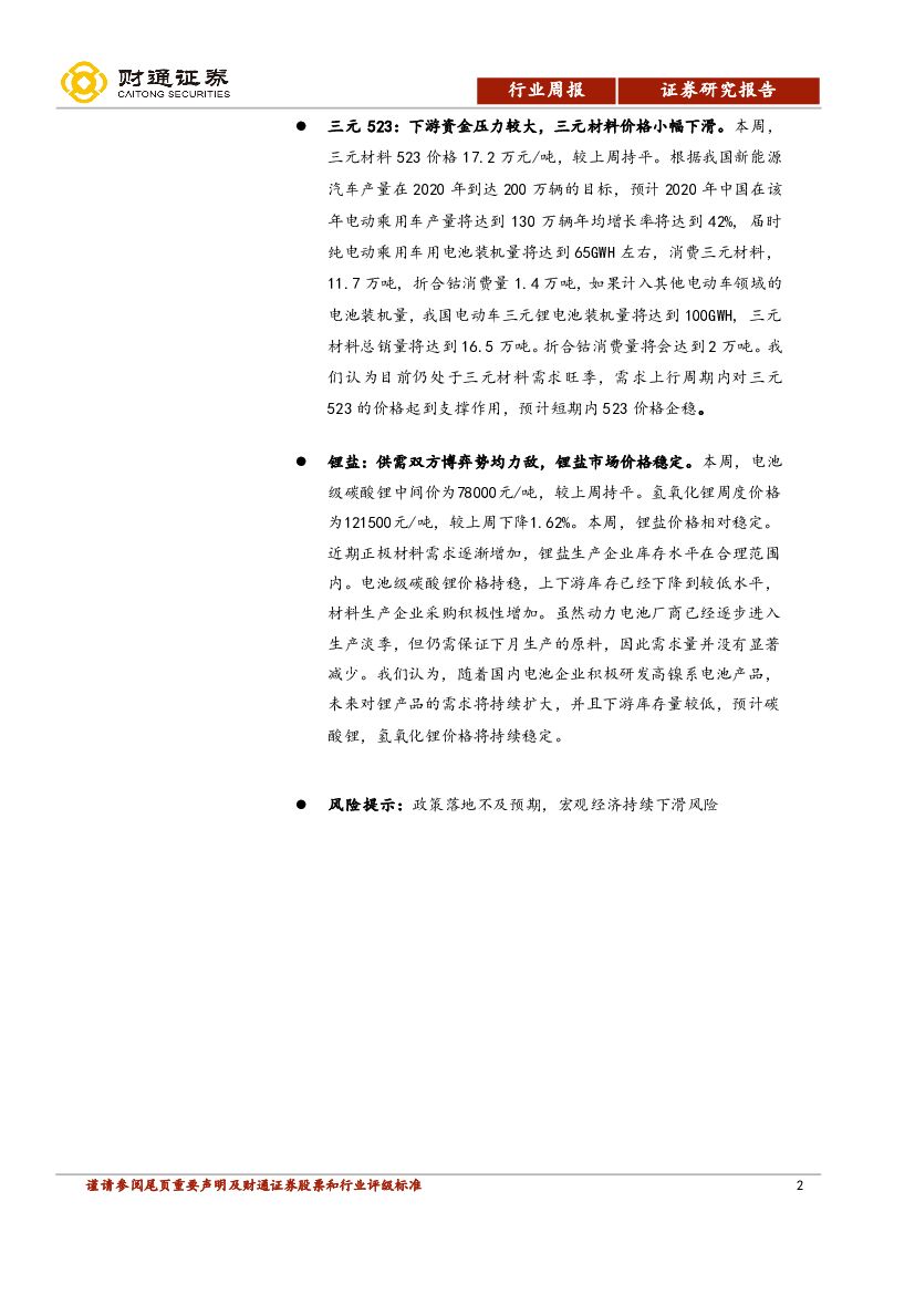 财通证券:钴锂周报:国内外钴价企稳,嘉能可限售利好国内钴企.pdf