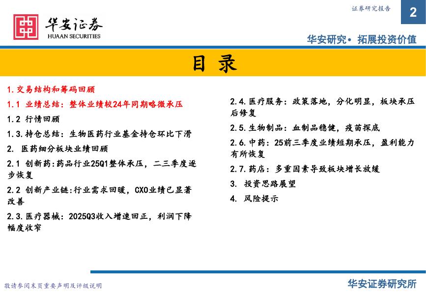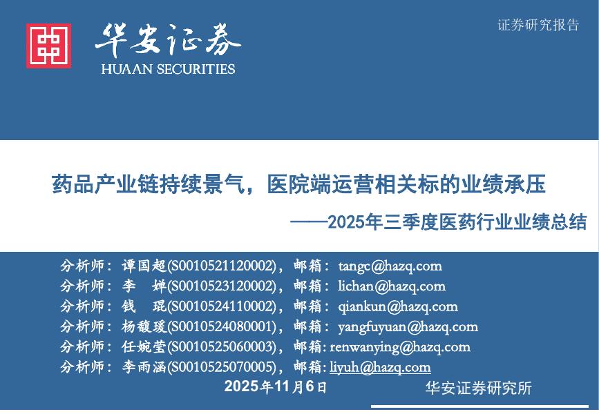 华安证券:2025年三季度医药行业业绩总结:药品产业链持续景气,医院端运营相关标的业绩承压.pdf