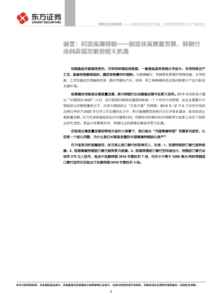 东方证券:钢铁行业“问道高端特钢”系列报告之一:进口替代-高端特钢进口替代加速,战略看好特钢核心资产投资机会.pdf