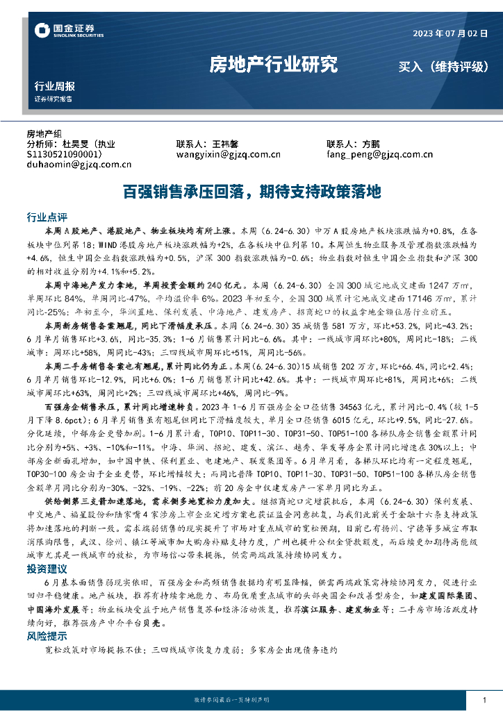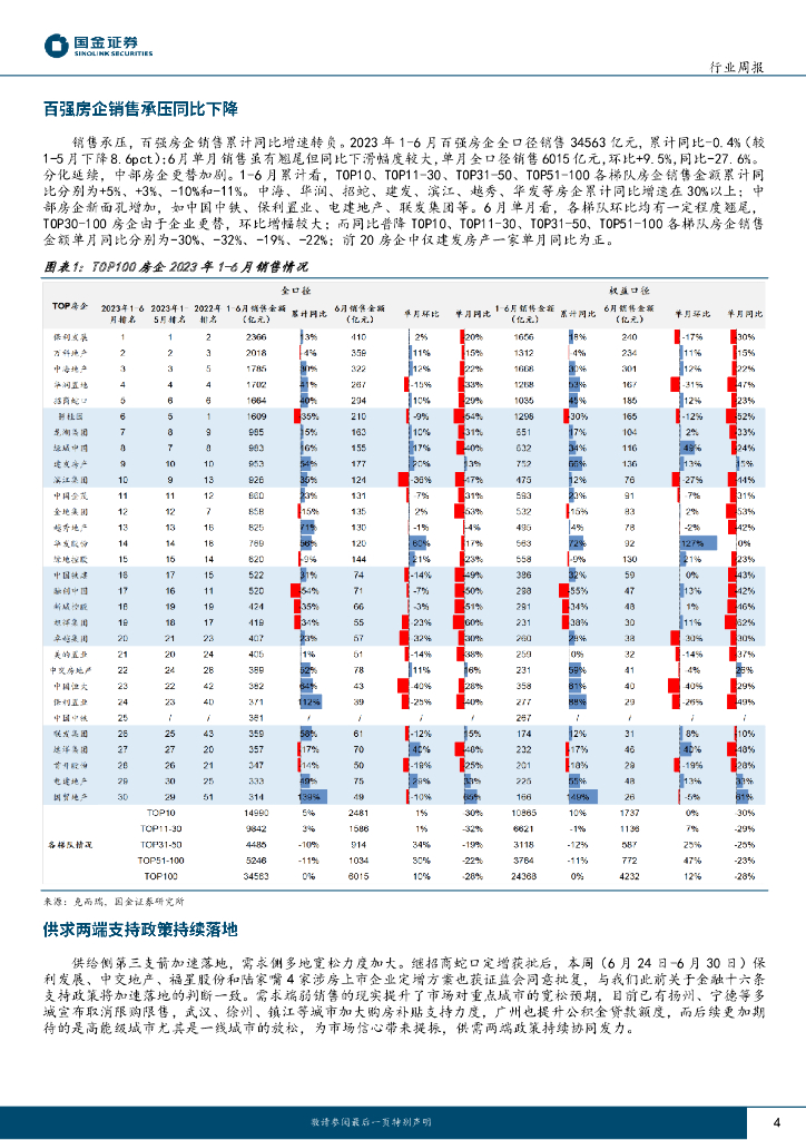 国金证券:房地产行业研究:百强销售承压回落,期待支持政策落地.pdf