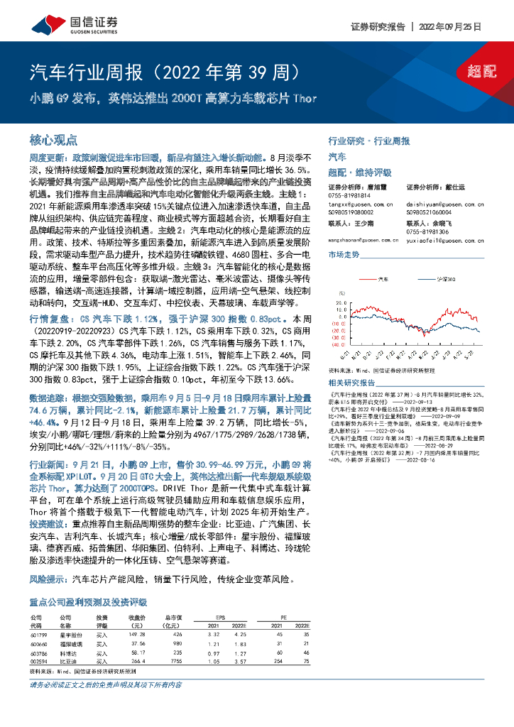 国信证券:汽车行业周报(2022年第39周):小鹏G9发布,英伟达推出2000T高算力车载芯片Thor.pdf