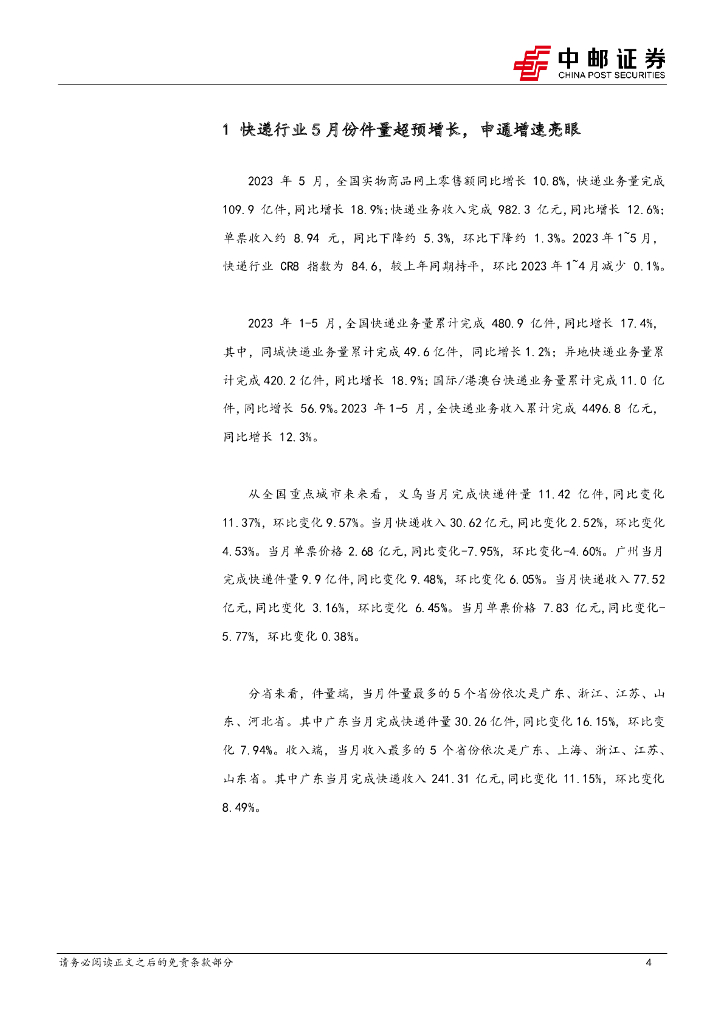 中邮证券:快递行业5月数据点评:行业件量维持高速增长,申通增速亮眼.pdf