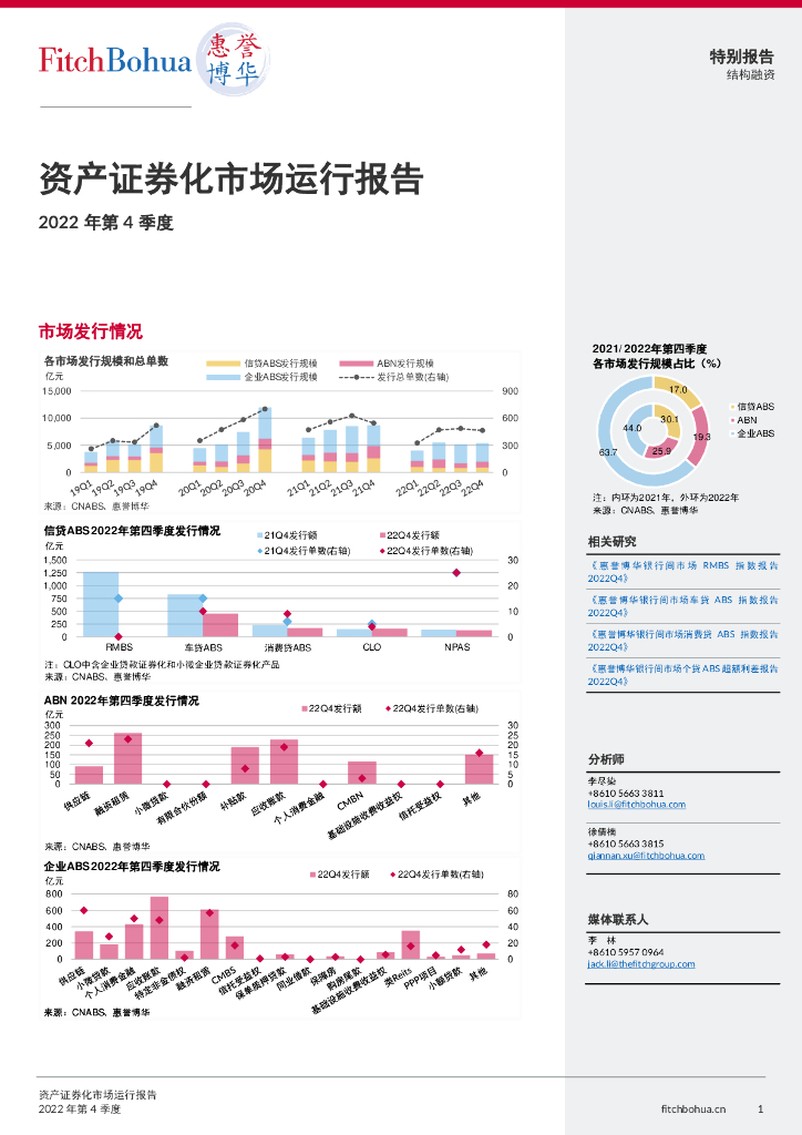 资产证券化市场发行同比下降、环比上升:2022年四季度资产证券化市场整体发行延续低迷,全市场共计发行资产证券化产品464单,总发行金额5,360.6亿元,发行金">
