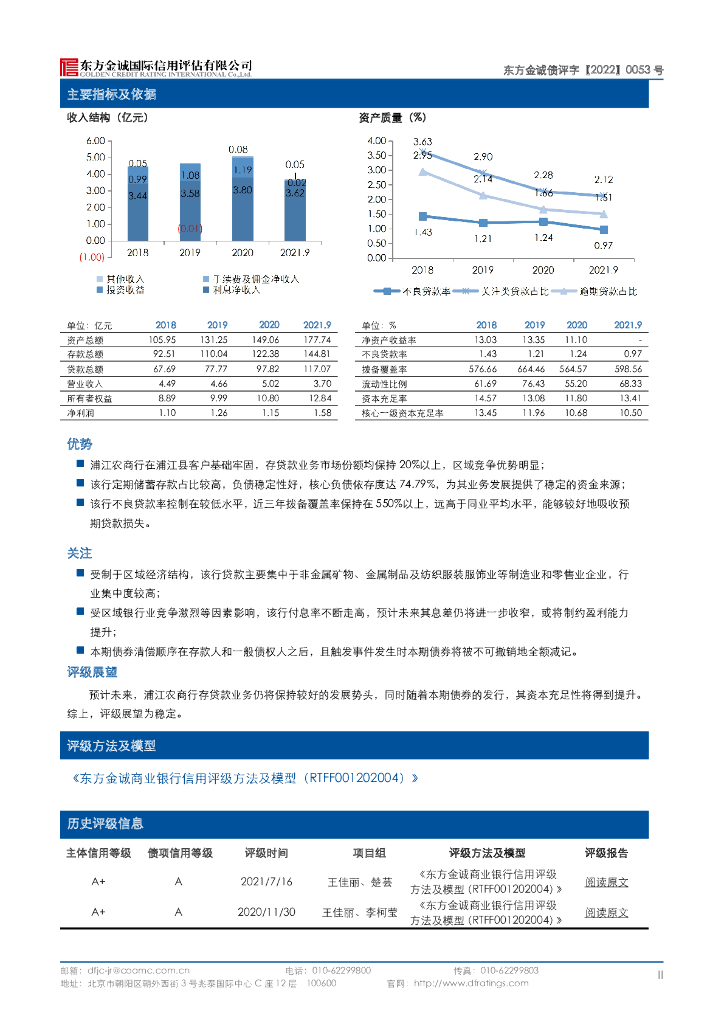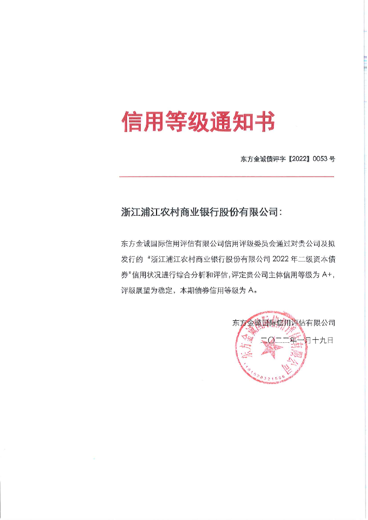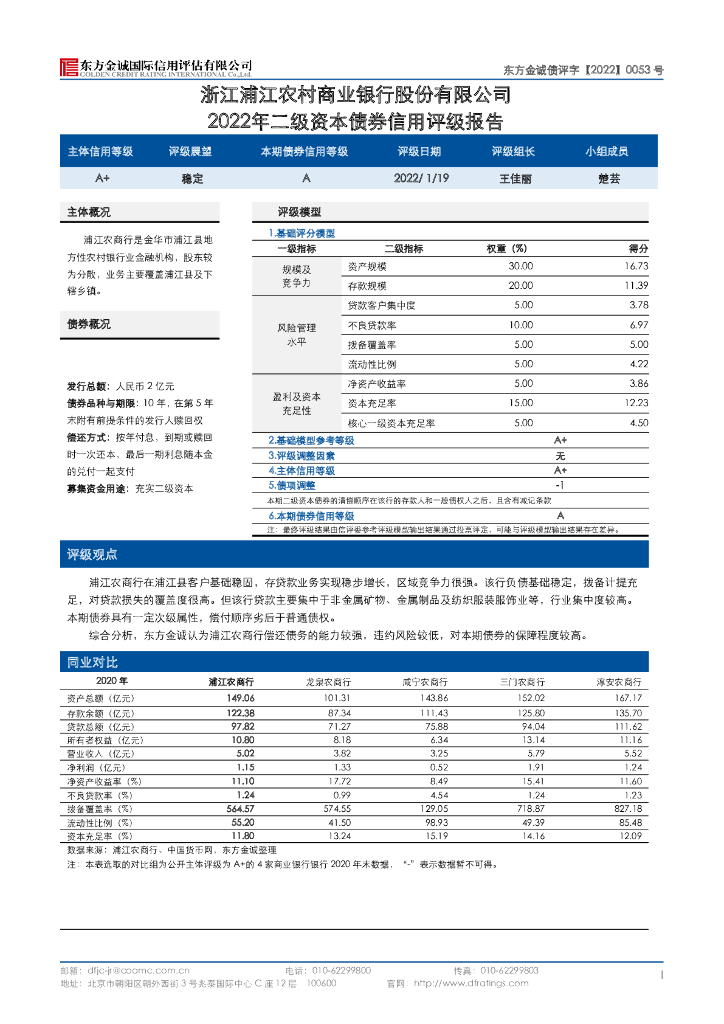 东方金诚:浙江浦江农村商业银行股份有限公司2022年二级资本债券信用评级报告及跟踪评级安排.pdf