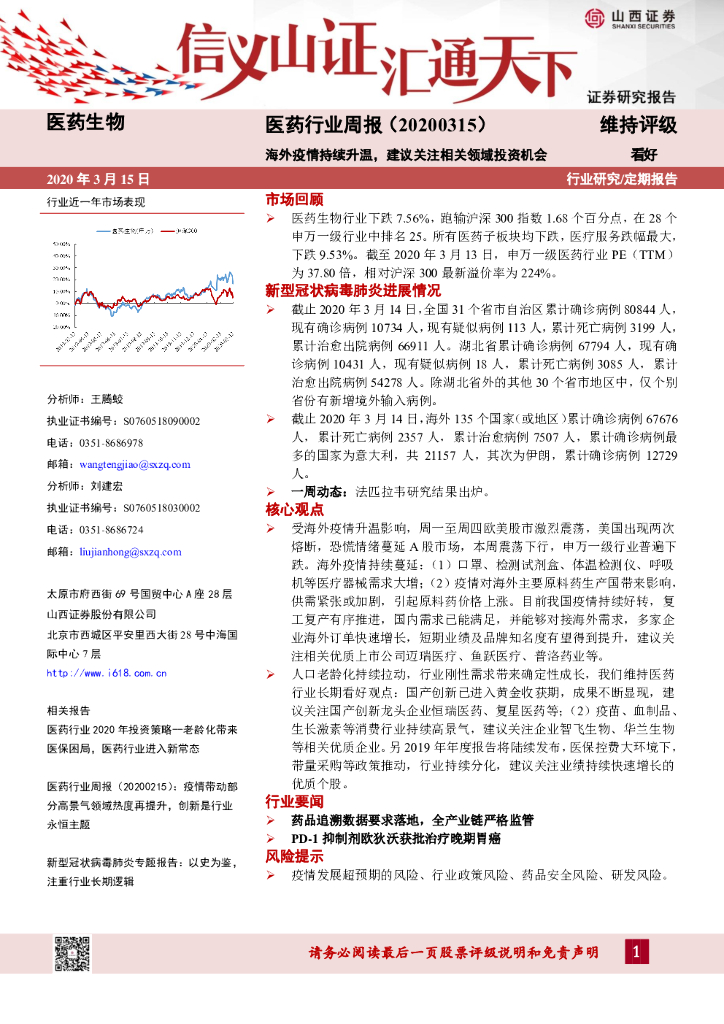 山西证券:医药行业周报:海外疫情持续升温,建议关注相关领域投资机会.pdf