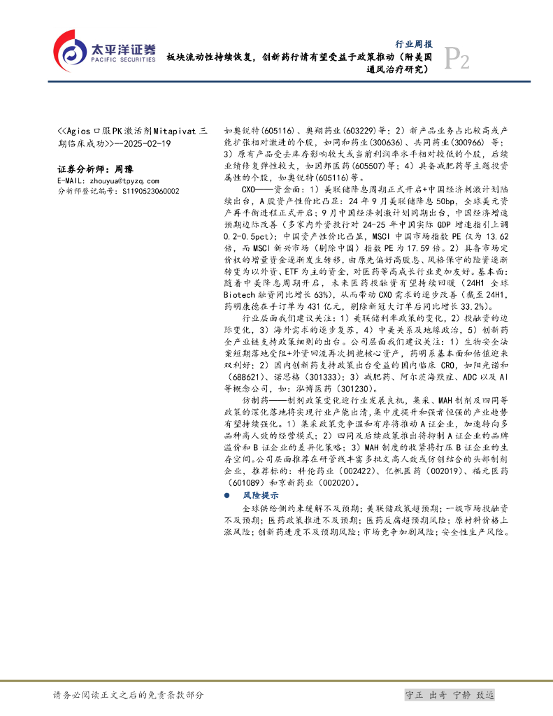 太平洋证券:医药行业周报:板块流动性持续恢复,创新药行情有望受益于政策推动(附美国痛风治疗研究).pdf