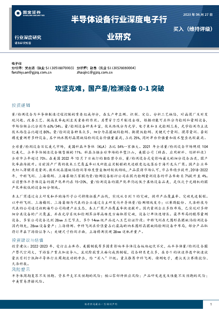 国金证券:半导体设备行业深度电子行业研究:攻坚克难,国产量/检测设备0-1突破.pdf