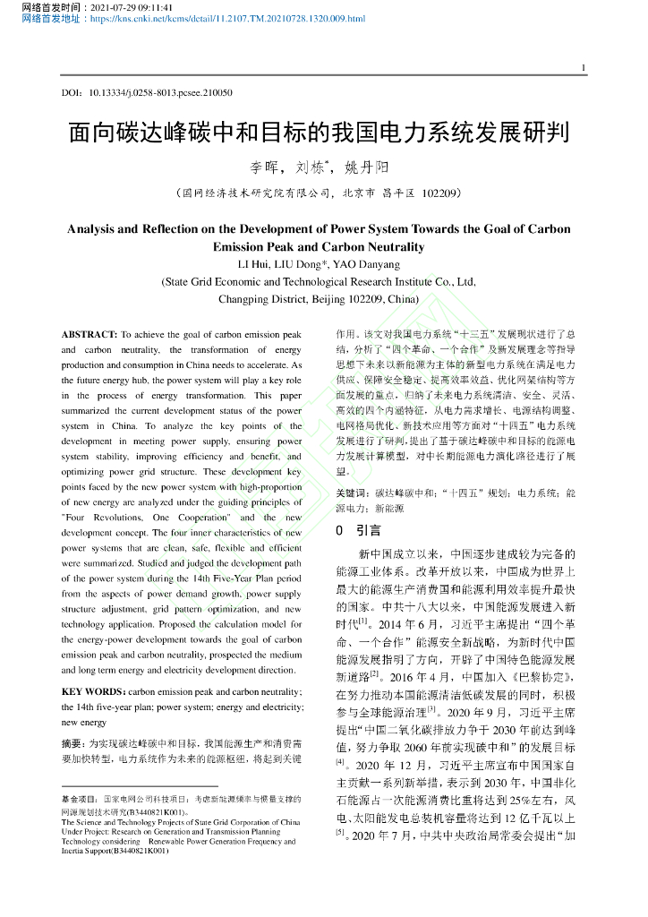 面向碳达峰碳中和目标的我国电力系统发展研判.pdf