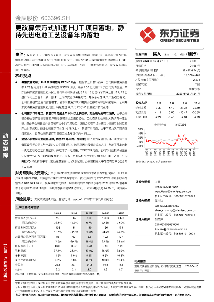 东方证券:金辰股份(603396)-更改募集方式加速HJT项目落地,静东方证券待先进电池工艺设备年内落地.pdf