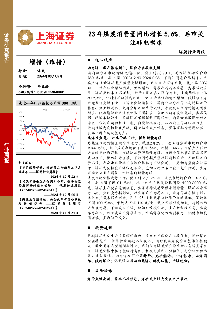 上海证券:煤炭行业周报:23年煤炭消费量同比增长5.6%,后市关注非电需求.pdf