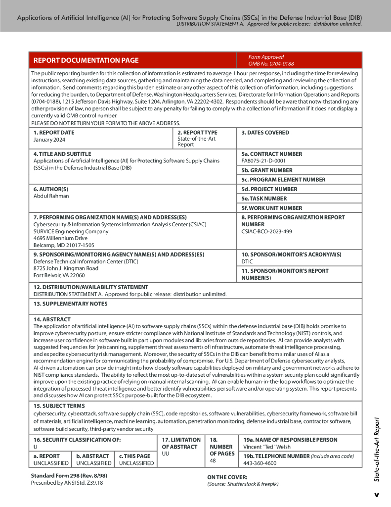 CSIAC:2024人工智能在保护美国国防工业基础软件供应链中的应用报告(英文版).pdf