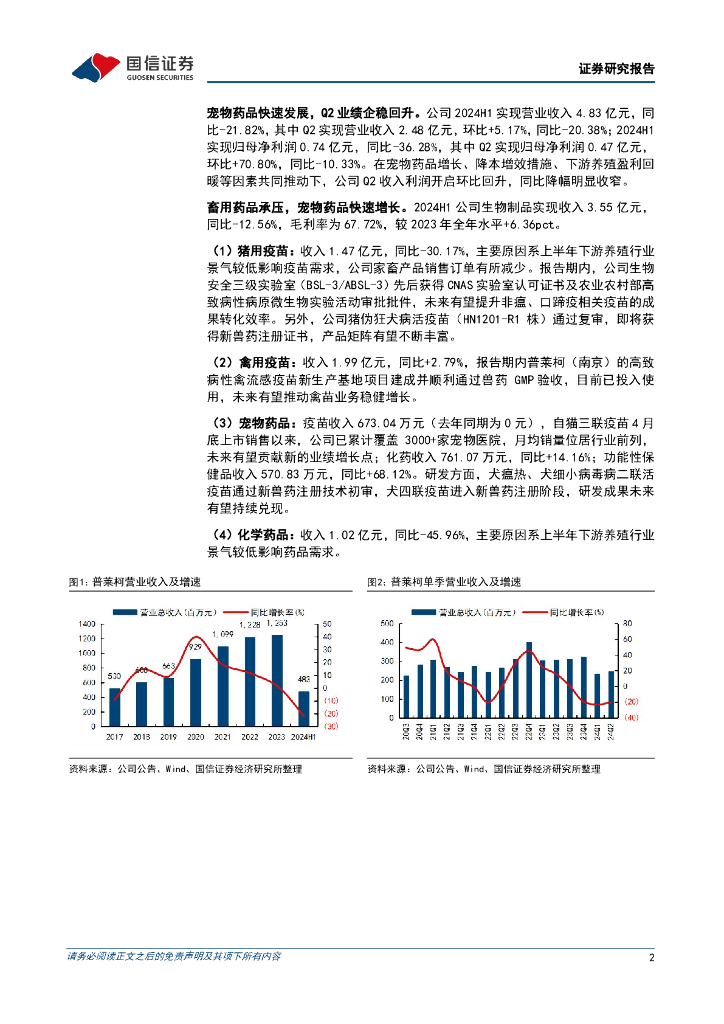国信证券:普莱柯(603566)-2024中报点评:宠物药品快速发展,Q2业绩企稳回升,归母净利润环比+71%.pdf