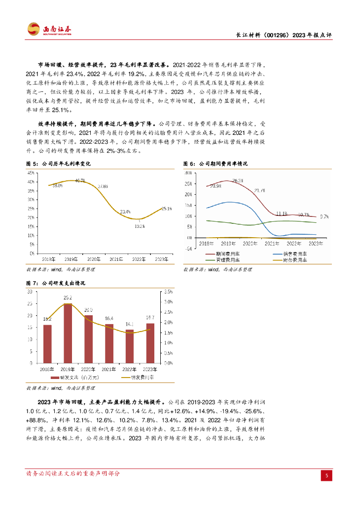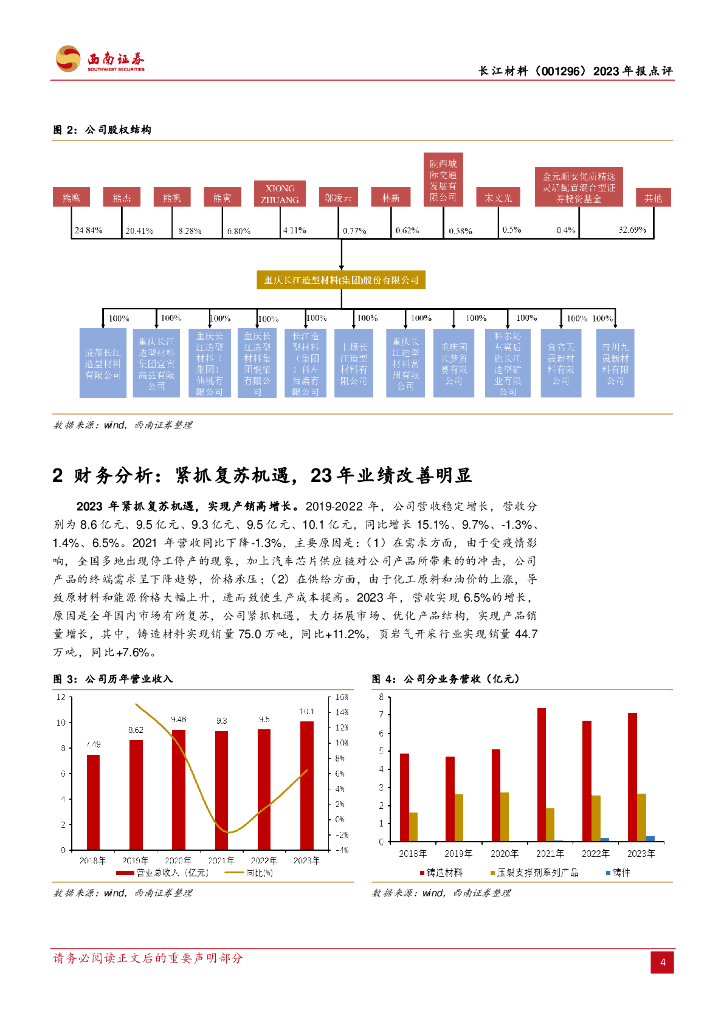 西南证券:长江材料(001296)-2023年报点评:产品盈利能力提升,业绩大幅改善.pdf