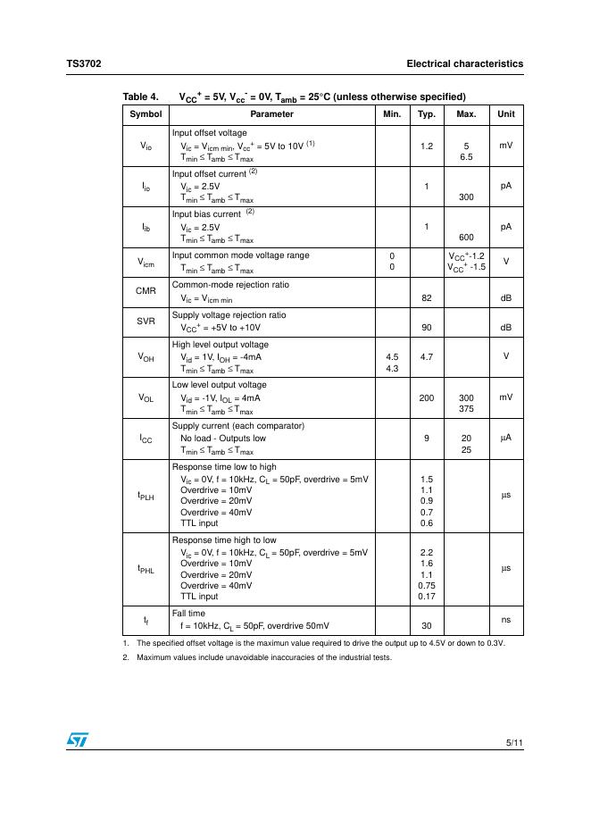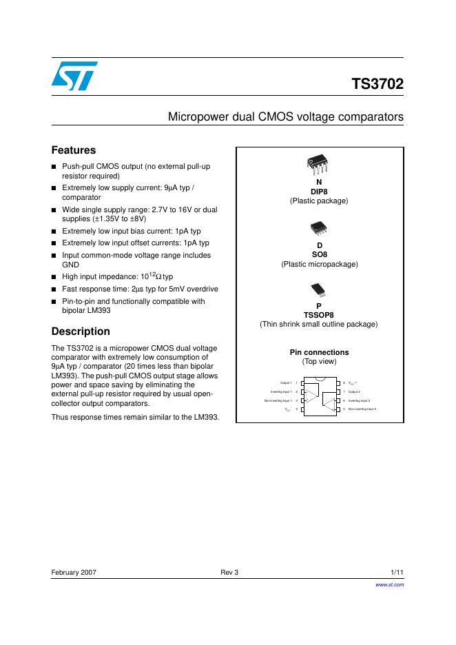 STMICROELECTRONICS TS3702 Micropower dual CMOS voltage comparators 数据手册.pdf