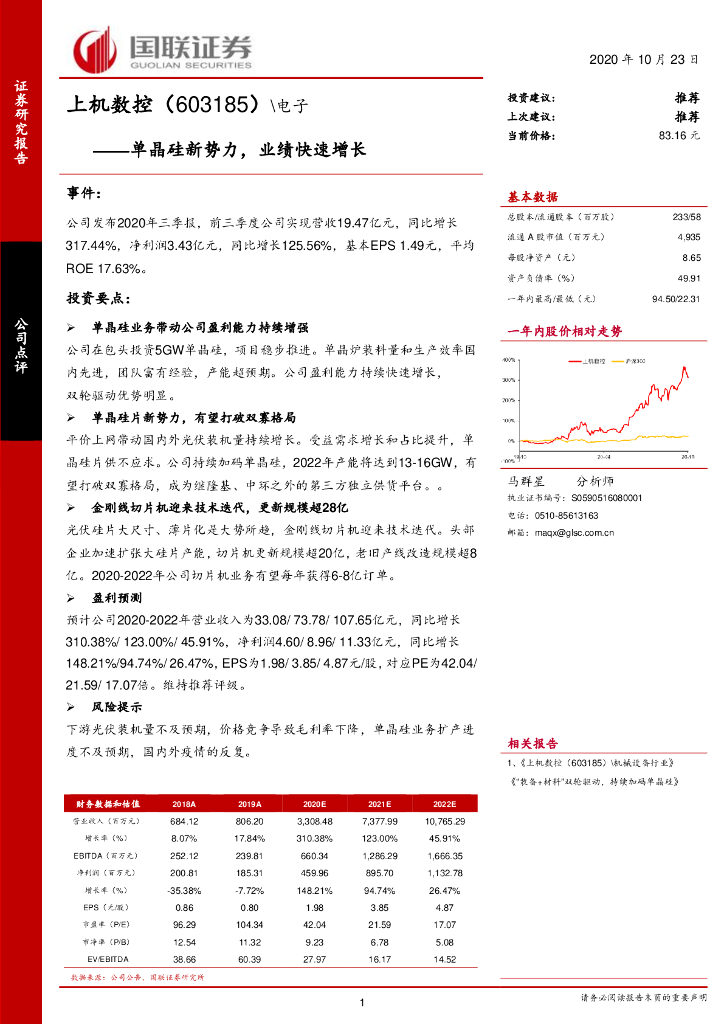 国联证券:上机数控(603185)-单晶硅新势力,业绩快速增长.pdf