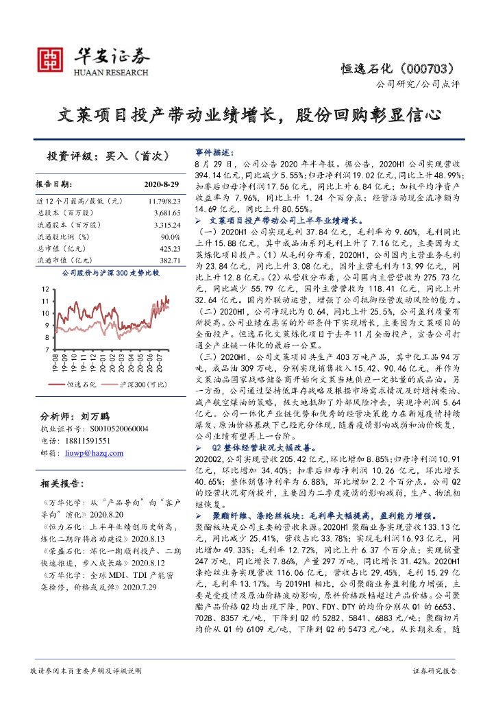 华安证券:恒逸石化(000703)-文莱项目投产带动业绩增长,股份回购彰显信心.pdf