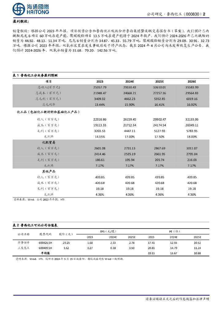 海通国际:鲁西化工(000830)-公司年报点评:23年归母净利润同比下降74.05%,看好新项目投产带来的成长空间.pdf