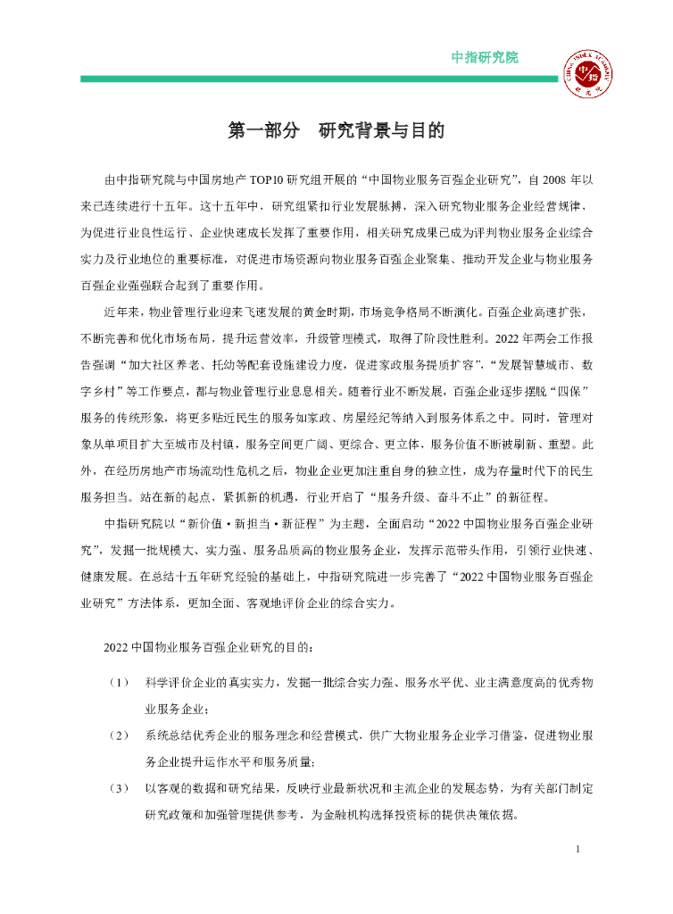中国指数研究院:2022中国物业服务百强企业研究报告.pdf