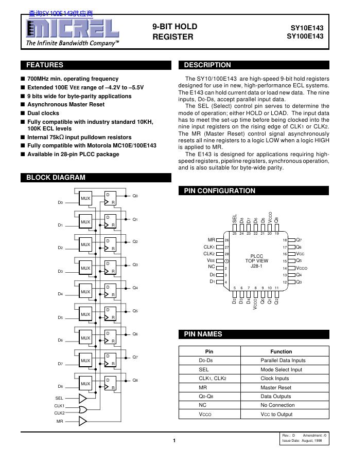 MICREL SY10E143 SY100E143 数据手册.pdf
