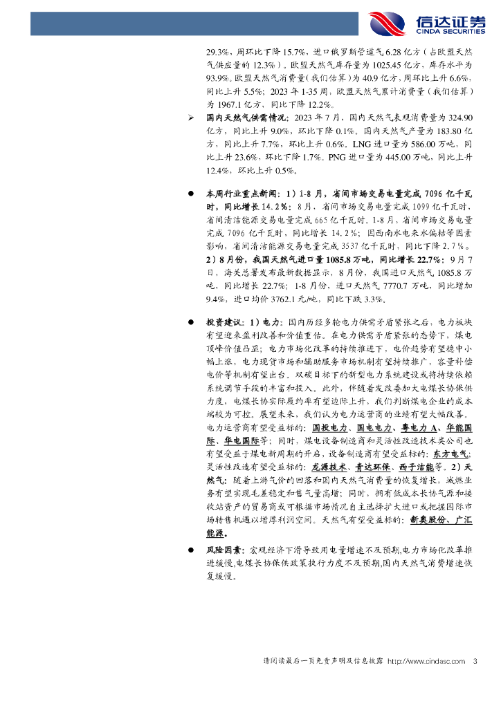 信达证券:公用事业—电力天然气周报:8月广东现货电价同比下降明显,天然气进口量同比增长22.7%.pdf
