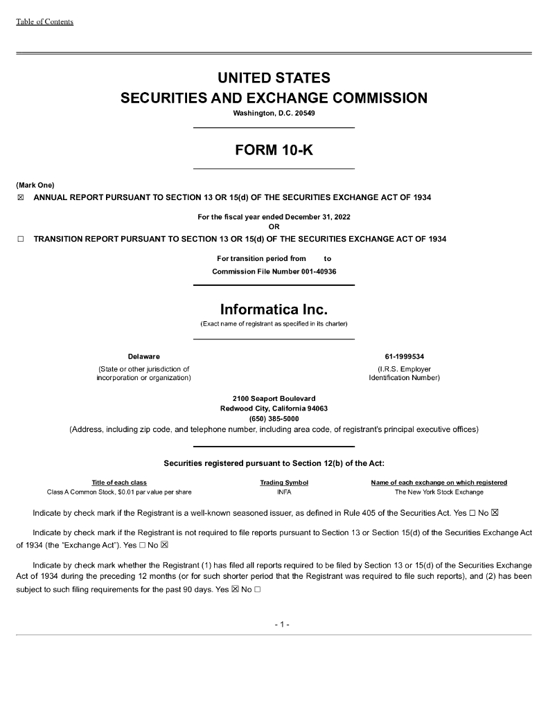 Informatica Inc.(INFA)2022财年年度报告(英文版).pdf