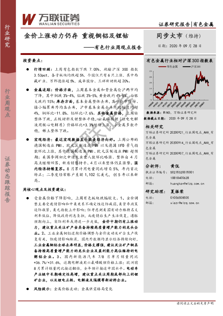 万联证券:有色行业周观点报告:金价上涨动力仍存 重视铜铝及锂钴.pdf