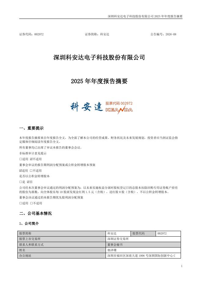 002972-科安达:2025年年度报告摘要.pdf