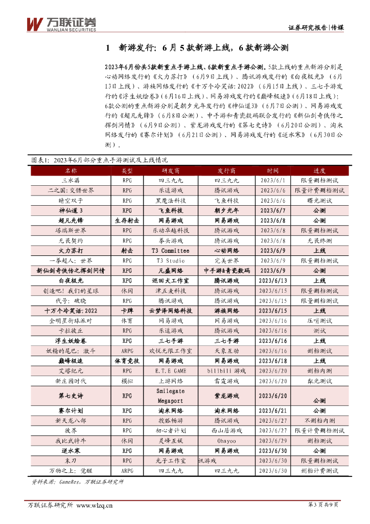 万联证券:传媒行业月报:6月新游《逆水寒》表现亮眼,89款国产游戏版号稳定发放.pdf