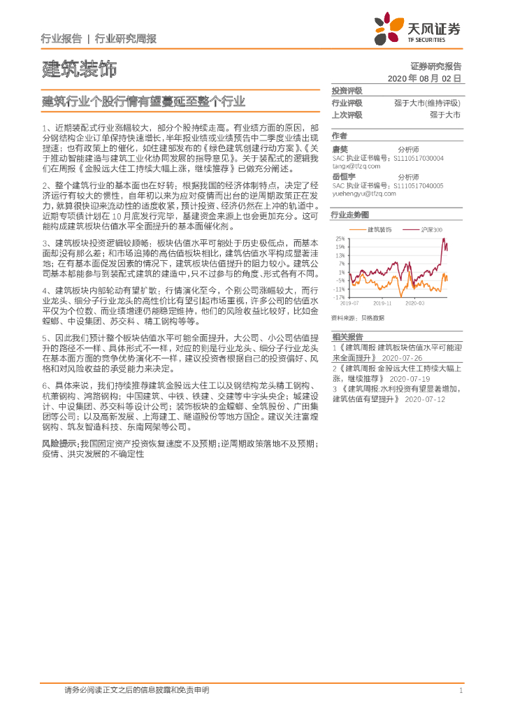 天风证券:建筑装饰行业研究周报:建筑行业个股行情有望蔓延至整个行业.pdf