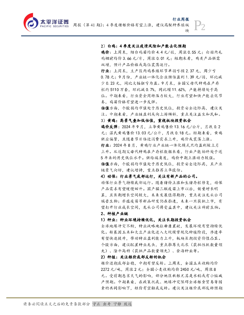 太平洋证券:农林牧渔周报(第41期):4季度猪粮价格有望上涨,建议高配种养殖板块.pdf