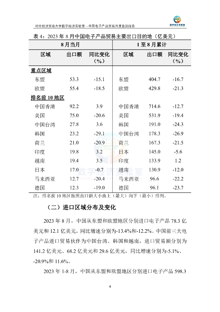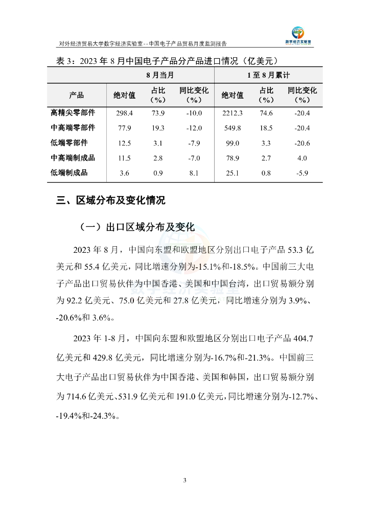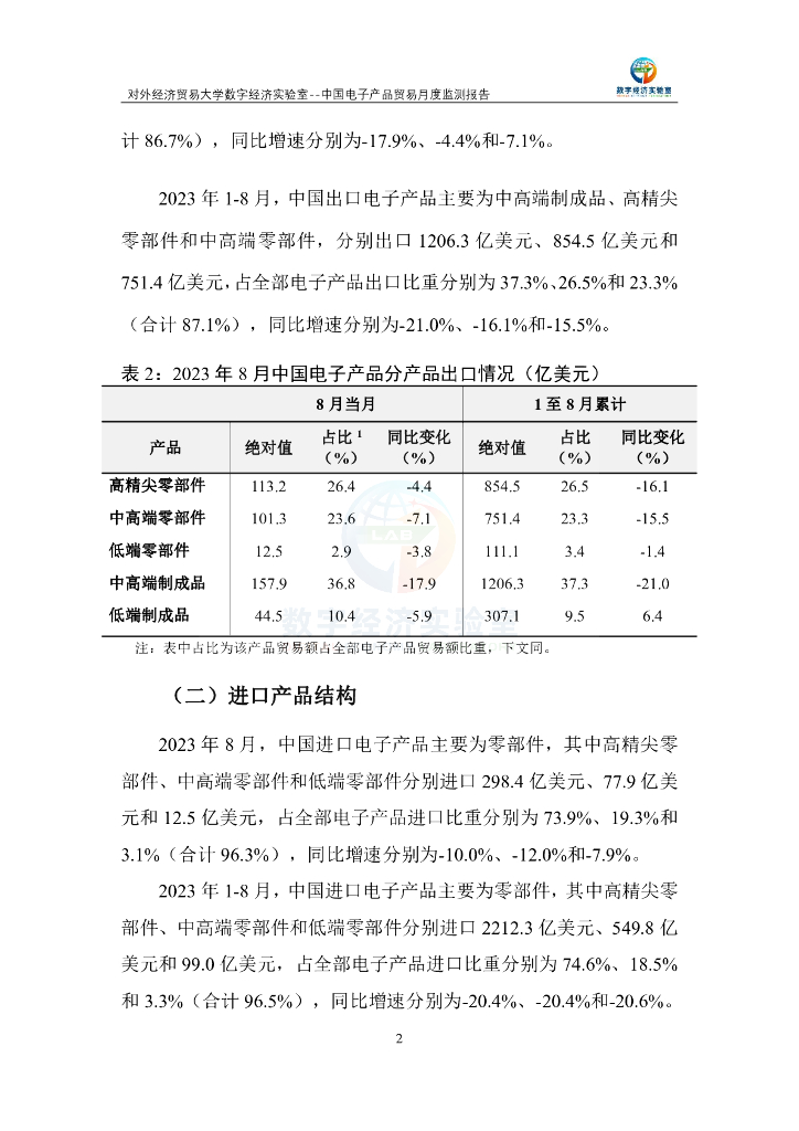 对外经济贸易大学:中国电子产品贸易月度(2023年1-8月)监测报告.pdf