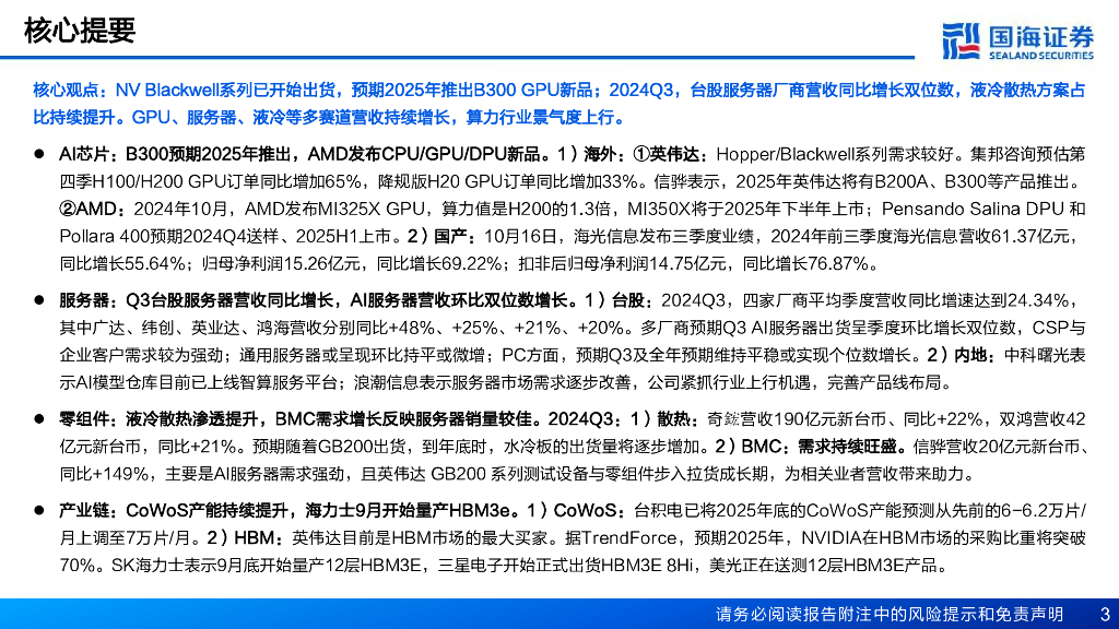 国海证券:AI算力月度跟踪(202410):英伟达将推出B300,Q3服务器行业景气持续向上.pdf