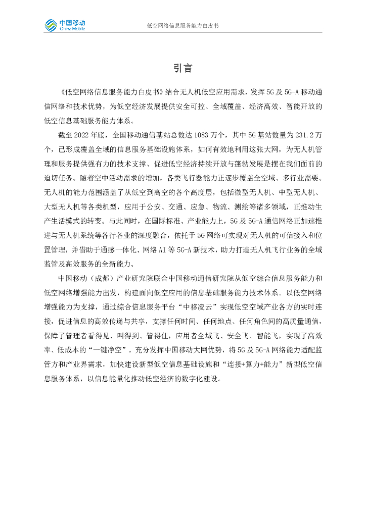中国移动研究院:2023低空网络信息服务能力白皮书.pdf