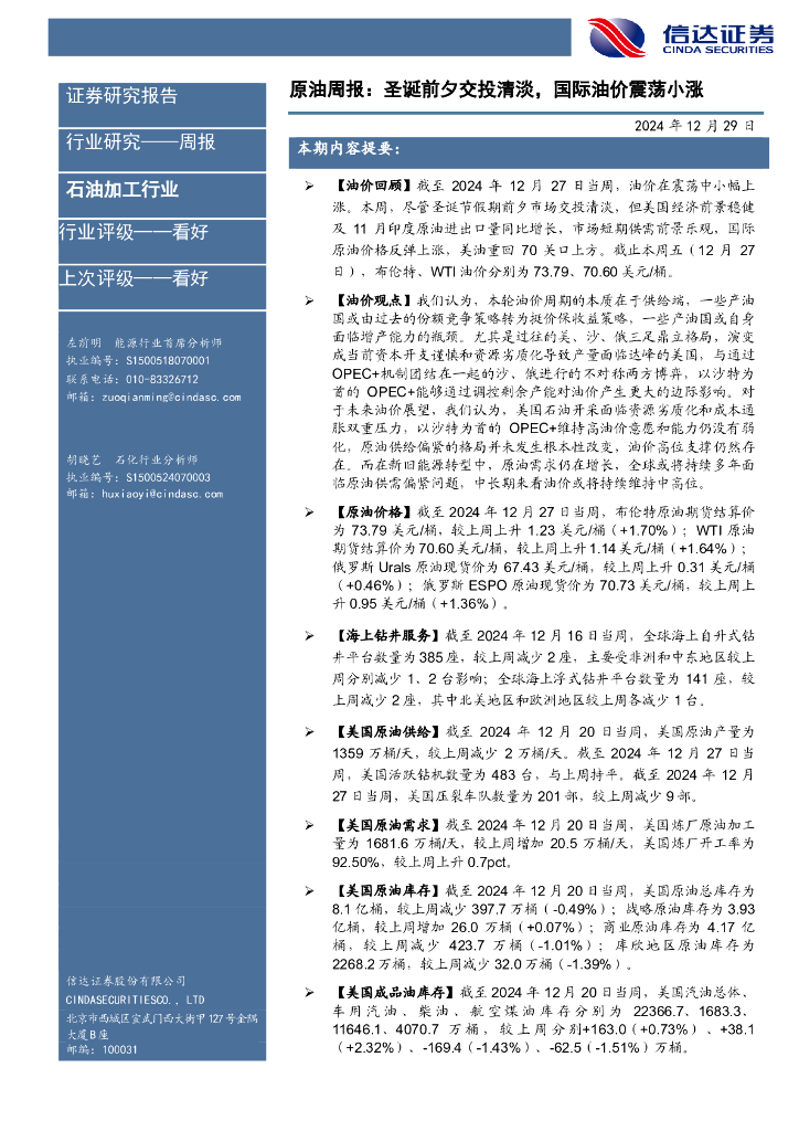 信达证券:行业研究——周报:原油周报:圣诞前夕交投清淡,国际油价震荡小涨.pdf