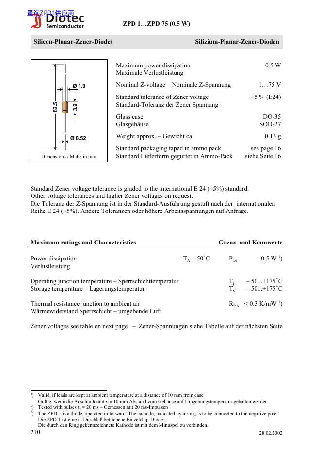 Diotec ZPD 1...ZPD 75 (0.5 W) 数据手册.pdf
